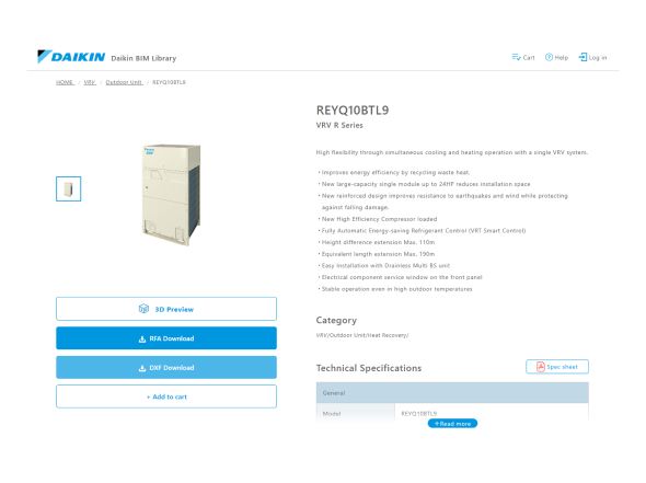 建材・設備メーカーのBIM配布サイトの構築をスピーディーかつ柔軟に支援いたします。ダイキン工業株式会社さま