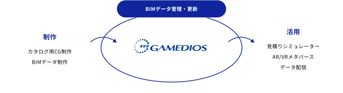 「GAMEDIOS® BIMオプション」は、TOPPAN株式会社が提供する建材・設備メーカー向けBIMデータ管理・活用ソリューションです。BIMデータの管理・編集から、活用・応用までを一気通貫にサポートいたします。