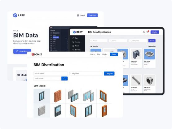 品番単位でBIMデータの検索・ダウンロードができる検索サイトを、テンプレートから簡単に構築できます。また、BIMデータからサムネイル・3Dプレビュー生成ができるため、ブラウザ上でダウンロード前に内容を確認することもできます。既に製品検索サイトをお持ちの場合には、BIM関連機能だけを連携・追加する改修も承れます。